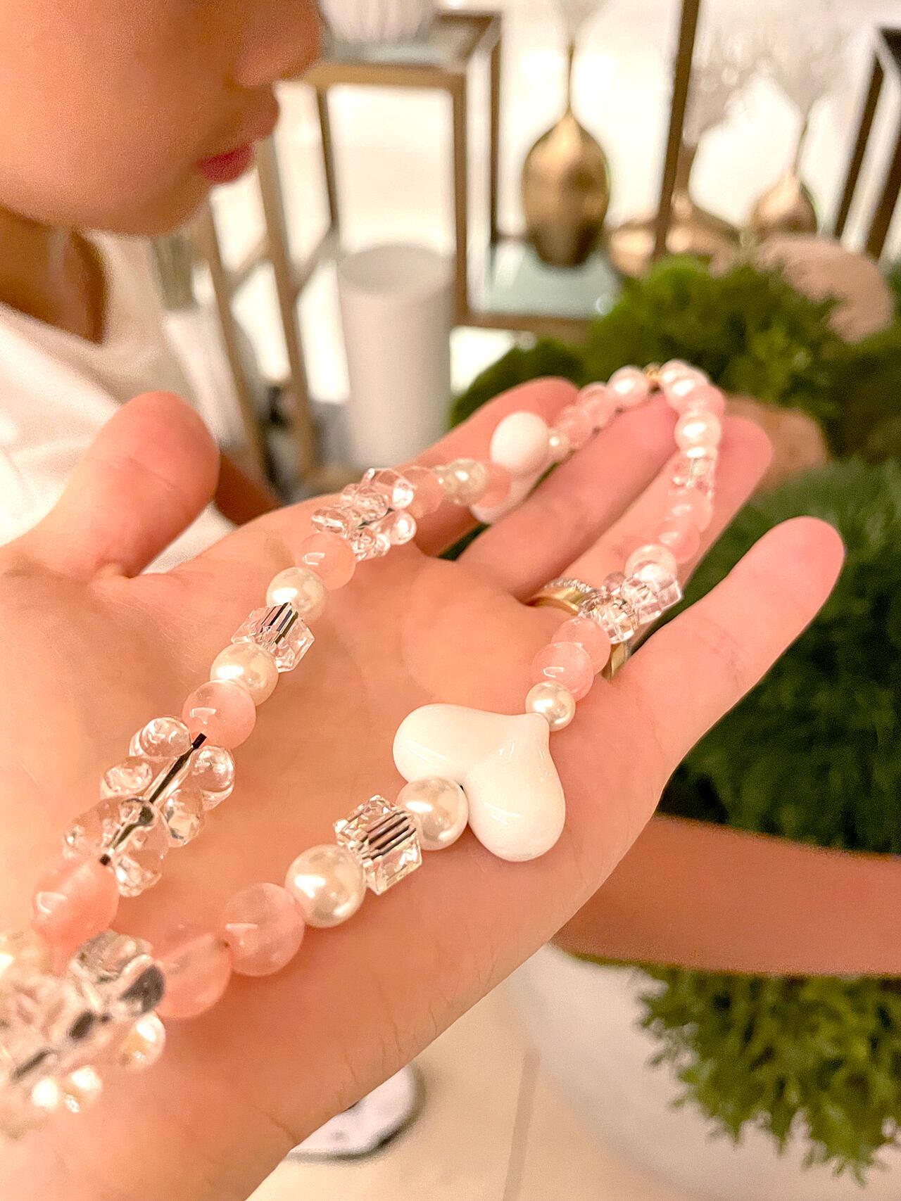 小さくてかわいいビーズを一つ一つ繋ぎ、